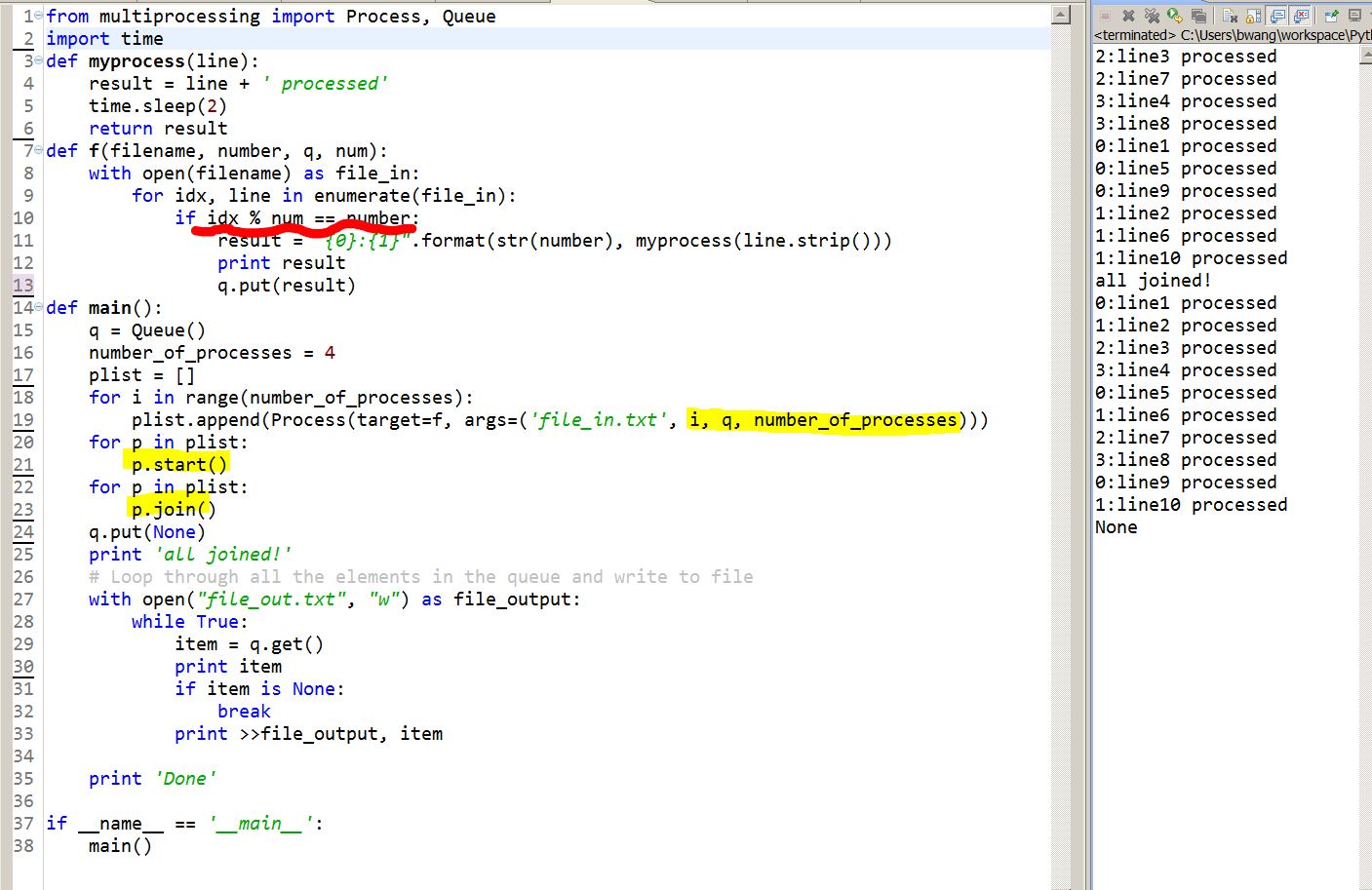 Here is some code that I have written in Python using the multiprocessing (just want to side-bypass the GIL for now because I am newbie 🙂 ).