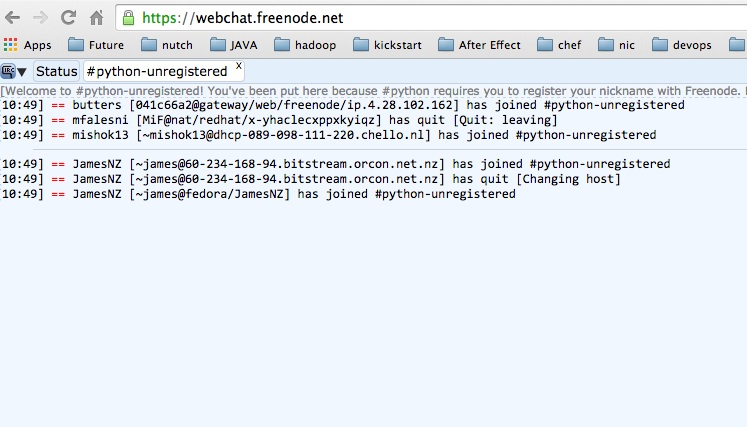 IRC – A real time “stackoverflow” for asking programming questions. November 24, 2014 by datafireball Share this: Click to share on X (Opens in new window) X Click to share on Facebook (Opens in new window) Facebook Like Loading... Related