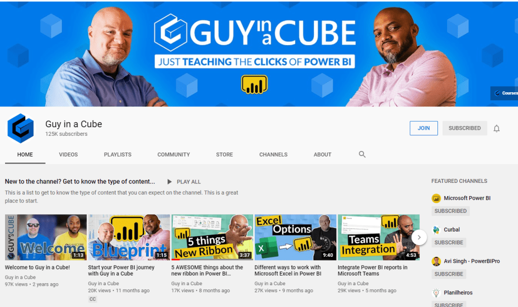 A good channel to follow is the “Guy in a Cube” which Adam and Patrick talk about some of the functionalities of PowerBI in a very practical and concise way, absolutely subscribe and follow through their videos.