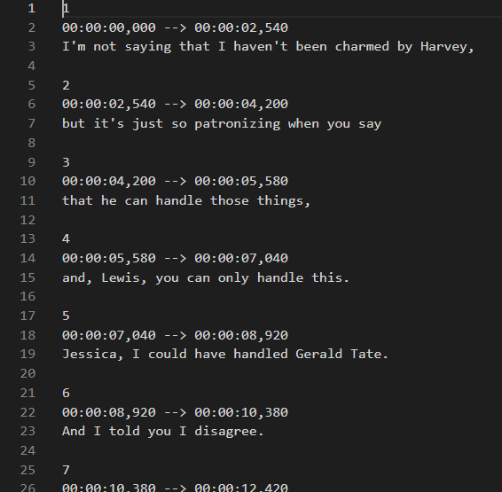 now you got 10 minutes good quality of a youtube audio and yt_dlp also supports download video with various options. (below is a screenshot of a 10 minutes video, the 1st scene of the TV show suits). This TV shows is spoken in American English quite fast paced and contains unfamiliar terms often because its plot is about stories between lawyers.