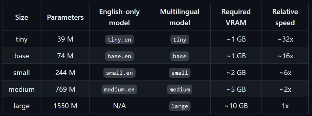 Whisper has a few different models, the bigger model has better performance but comes at the cost of a bigger size (storage/ram/network) and slower speed. Just keep in mind that the model will be downloaded the first time it is being used and you should expect a delay depending on your network.